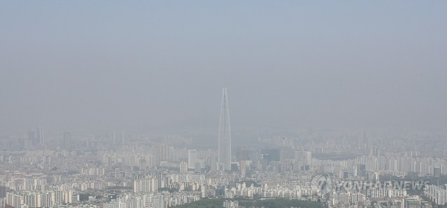 미세먼지가 전국을 뒤덮은 7일 오전 경기도 광주시 남한산성에서 바라본 서울 시내가 뿌옇다. 8일 밤 전남 해안, 제주에서 시작되는 비가 대통령선거일인 9일 전국적으로 확대되면서 전국을 뒤덮었던 미세먼지 농도도 옅어질 것으로 예상된다.