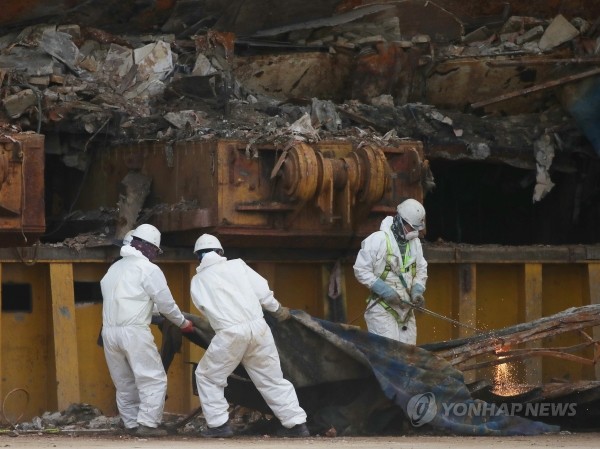 아울러 갑판 부분인 5층 10곳 구역 중에서도 1곳에서 정리작업이 진행 중에 있다.
