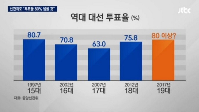 이는 ‘국정농단’ 이후 젊은 층들과 정치에 관심이 많아졌다는 것과 가정의 달인 5월 장미대선의 영향 등을 그 이유로 뽑고 있다.