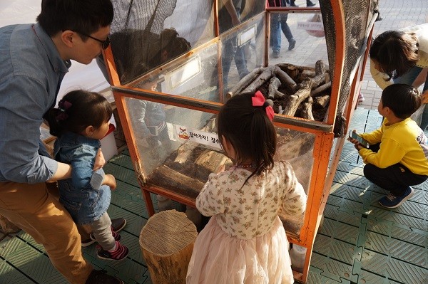 생태 곤충체험관에는 장수풍뎅이, 애벌레 등 곤충이 전시돼 있어 지나가는 어린이들의 시선을 사로잡는다.