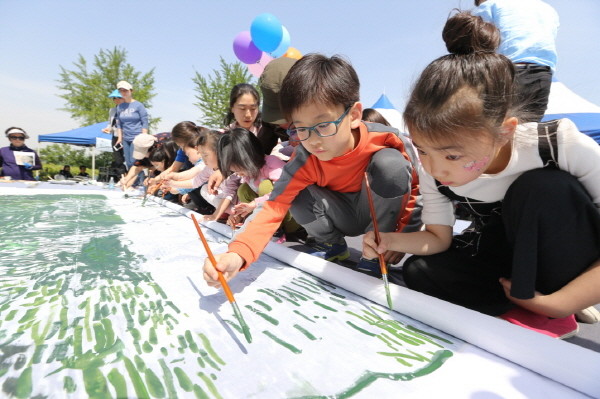 | ▲ 지난해 열린 제2회 겸재문화예술제에서 '진경산수를 그려라' 체험 행사에 참여하고 있는 어린이들의 모습. | ||
