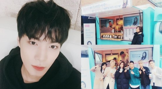 공개된 사진 속에는 뉴이스트가 보낸 카페차 앞에서 포즈를 취한 유이의 모습이 담겨있다. 특히 이들의 다정한 분위기가 보는 이들의 훈훈함을 자아내고 있다.