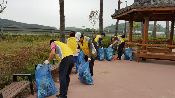 지난 12일 경기 김포시 풍무동 주민자치위원회가 오는 27일 열리는 '주민화합건강걷기 행사'를 위해 코스를 사전답사하고 행사의 성료를 위해 계양천변 일대의 환경정화 활동을 실시했다. 사진은 참여자들이 쓰레기를 줍는 모습.(사진제공=김포시청)