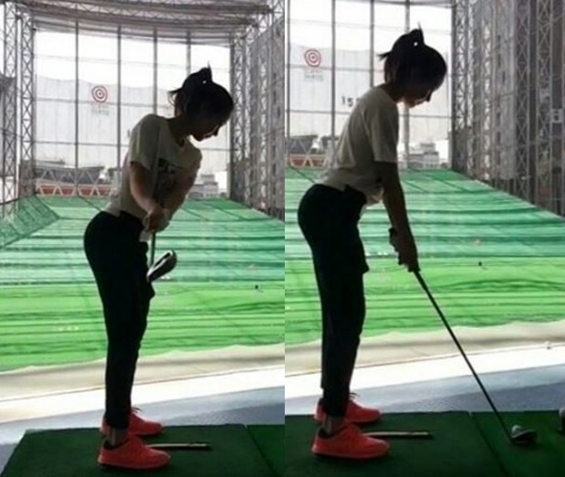 배우 성유리와 안성현의 결혼 소식이 전해진 가운데 성유리의 골프 자세가 눈길을 끈다.