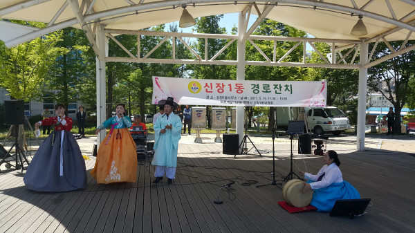 경기 평택시 신장1동 바르게살기운동위원회는 지난 15일 ‘제45회 어버이날’을 맞이해 지역사회 노인들을 대상으로 경로효친사상을 고양하자는 취지에서 경로잔치를 개최했다. 사진은 경로잔치에서 국악공연이 진행되고 있는 모습.(사진제공=평택시청)