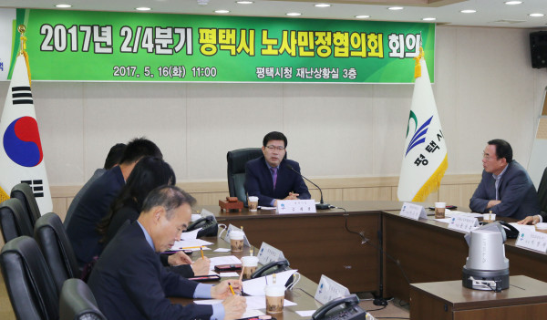 경기 평택시는 지난 16일 시청 재난상황실에서 올해 첫 노사민정 협의회를 개최하고 2017년 지역 노사민정협력 활성화 사업 3개 분야, 7개 세부사업에 대해 심의·의결했다. 사진은 공재광 시장이 회의에서 발언하고 있는 모습.(사진제공=평택시청)