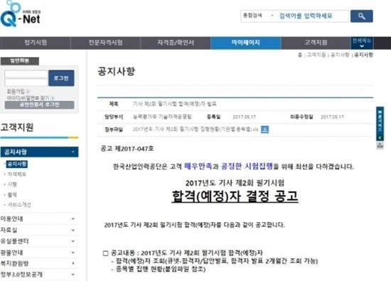 지난 18일 오전 9시 큐넷은 산업인력공단 사이트 큐넷은 기사 제2회 필기시험 합격자를 발표했으며 제2회 기사·산업기사 필기시험 합격자는 앞으로 2개월 동안 명단 조회가 가능하다.