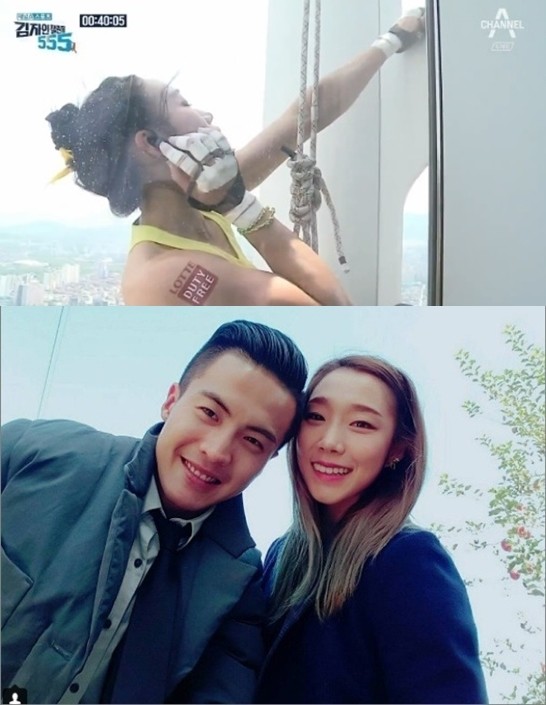 이날 행사에서 김자인은 맨손으로 555미터 높이에 달하는 롯데월드타워 건물 외벽을 타고 오르는 '빌더링'(Buildering)에 나서 화제를 끌었다.