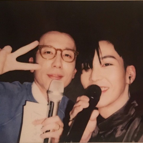 사진 속 그는 훈훈한 외모를 뽐내며 카메라를 응시하고 있으며 옆에는 유희열이 살며시 미소 짓고 손가락 브이를 만든 채 서 있다.