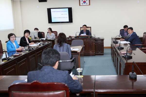 이어 승용차 마일리지, 미세먼지 발생 국내 요인, 분진 흡입차 보급, 대기오염 측정소 이전, 초등학교 일반 운동장 미세먼지 억제 대책 등에 대해 질의응답을 통해 개선 방안을 논의하는 시간을 가졌다.