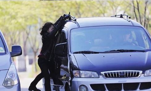 특히 승합차에 매달린 위험천만한 모습이 보는이들의 눈길을 자극했다.