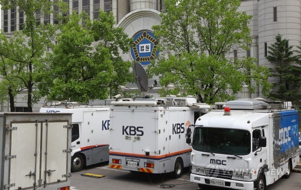 | ▲ 박근혜 전 대통령의 첫 정식 재판을 하루 앞둔 22일 오후 서울 서초구 서울법원종합청사에 방송 중계차량이 미리 세워져 있다.(사진제공=연합뉴스) | ||