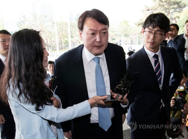 | ▲ 윤석열 신임 서울중앙지검장이 22일 오전 서초동 서울중앙지방검찰청 청사로 출근하며 취재진 질문에 답하고 있다.(사진제공=연합뉴스) | ||