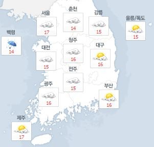 23일 현재 서울은 17도, 춘천 14도, 대전 15도, 청주 16도, 대구 16도, 부산 16도, 제주 17도를 기록 중이다.