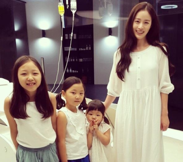 배우 김태희가 배우 정웅인의 세 딸들과 함께 찍은 사진이 눈길을 끌었다.