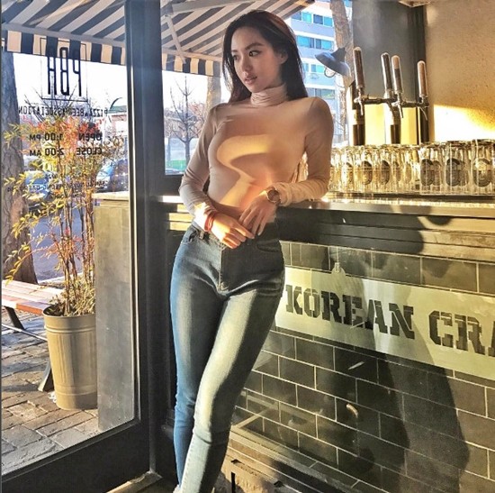 공개된 사진 속 그는 가게의 테이블에 살짝 기댄 채 어딘가를 바라보고 있는 모습이며 바디라인이 돋보이는 옷 스타일로 군살 없는 몸매를 뽐냈다.