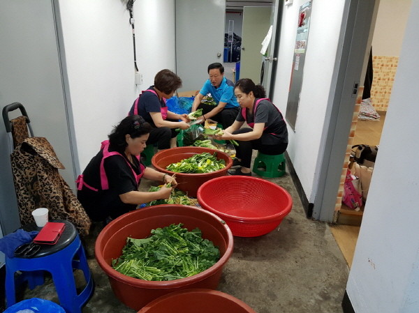 경기 수원시 팔달구 인계동 바르게살기위원회는 24일 인계동 행정복지센터에서 사랑의 봄김치를 만들어 지역내 생활이 어려운 기초생활수급자 15명에게 전달했다. 사진은 위원회 관계자들이 배추를 다듬는 모습.(사진제공=팔달구청)