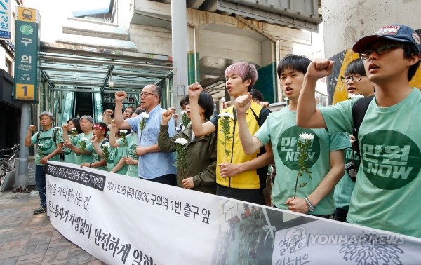 [시민일보=고수현 기자]지난해 5월28일 구의역에서 스크린 도어 정비중 사망한 김 모군(당시 19세)의 사고 1주기를 앞두고 청년·노동단체가 비정규직 철폐 등을 촉구하고 나섰다.