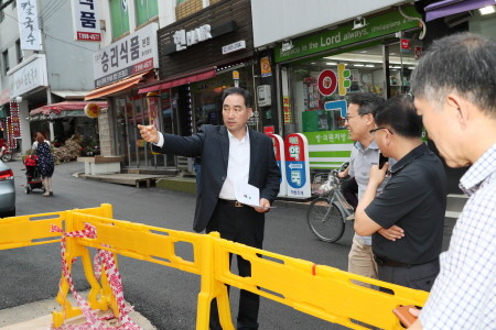 이 의원은 현장에서 장미원시장 상인회장을 만나 의견을 듣고, 구청 관계자와 함께 시장 입구 간판 설치 위치, 간판 디자인, 간판 높낮이, 간판 설치 시 차량 진출입 및 차량 주차 문제, 바닥 포장 디자인 등에 대해 논의했다.