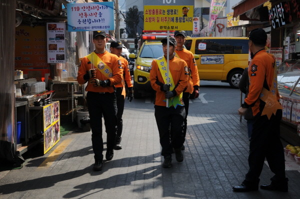 서울 관악소방서는 지난 25일 오후 긴급차량 출동시간 단축 및 출동로 확보를 위한 카퍼레이드 및 캠페인을 실시했다. 사진은 소방서 관계자들이 소방출동로 확보 캠페인을 펼치는 모습.(사진제공=관악소방서)
