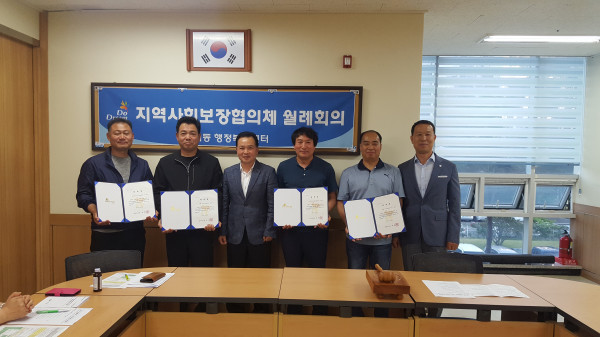 경기 동두천시 송내동 지역사회보장협의체에서는 최근 5월 정기회의에서 송내동 지역사회보장협의체 특화사업, 그 간의 맞춤형 복지 사업 실적 및 향후계획에 대해 논의했다. 사진은 참여자들이 회의 후 기념촬영을 하는 모습.(사진제공=동두천시청)
