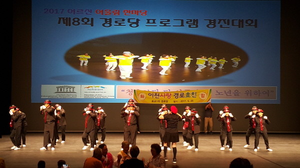 경기 이천시는 지난 25일 이천아트홀 대공연장에서 노인들이 한 자리에 모인 가운데 '제8회 이천시 경로당 프로그램 경진대회'를 개최했다. 사진은 노인들이 열띤 공연을 펼치는 모습.(사진제공=이천시청)