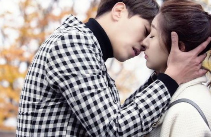 윤현민은 검정색 폴라티에 하운드 투스 체크 쟈켓을 입고 백진희의 머리를 감싸안은채 아름다운 키스씬을 연출하고 있는 것.