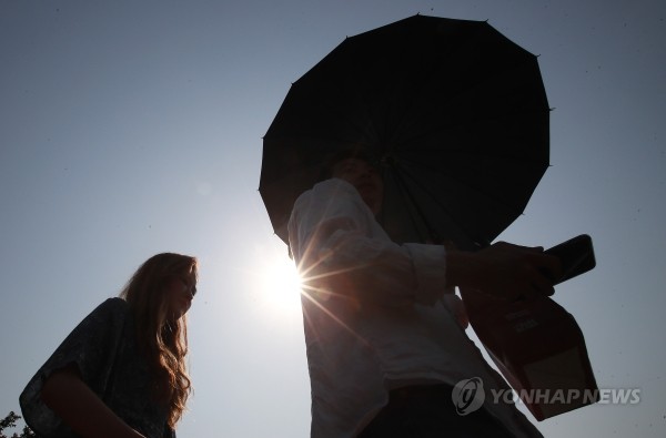 | ▲ 서울 낮 기온이 29도까지 오르며 30도를 육박한 지난 28일 오후 서울 송파구 방이동 올림픽공원 들꽃마루에서 한 시민이 양산을 쓴 채 이동하고 있다. 이날 수도권을 비롯한 전국 대부분 지역에서 오존 농도가 나쁨 수준을 기록했다.(사진제공=연합뉴스) | ||