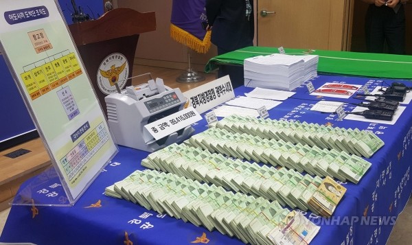 | ▲ 30일 경북지방경찰청에서 광역수사대가 전문도박단을 검거해 압수한 도박판돈이 놓여 있다.(사진제공=연합뉴스) | ||