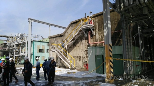 | ▲ 30일 오전 7시42분께 전남 여수시 평여동 여수국가산업단지 한화케미칼 1공장에서 불이 나 오전 8시40분께 완전히 진화됐다. 사진은 공장 관계자들이 불이 난 공장 앞에서 정리작업을 하고 있는 모습.(사진제공=연합뉴스) | ||