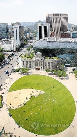 30일 오후 서울광장에서 서울시 관계자들이 서울광장을 점거했던 보수단체 천막이 철거된 공간에 잔디를 심고 있다. 서울시는 이날 새벽 박근혜 전 대통령 탄핵 사태이후 4개월동안 서울광장을 점거했던 천막들을 강제 철거했다.