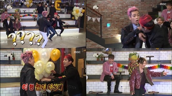 이날 방송에서 광희는 빅뱅 멤버들과 춤 대결을 펼쳤고 탑은 광희에게 특유의 눈빛과 ‘빙구 춤’으로 다가갔다.