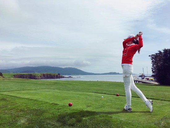 공개된 사진들 속 그는 정확한 포즈로 골프를 치고 있으며 빼어난 풍경과 어울리는 모습이다.