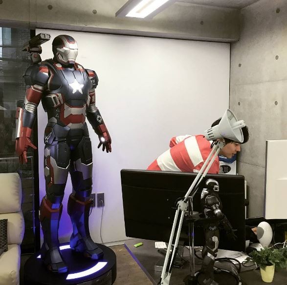 해당 사진을 접한 네티즌들은 "아이언맨 진짜 좋아하네" "작업실인가" "웹툰 잘 보고 있습니다" "옆 모습도 훈훈하네"라는 반응을 보였다.