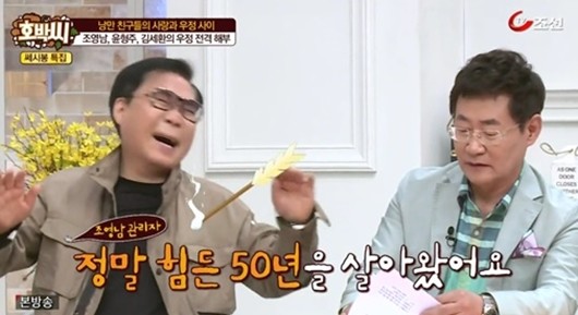 이날 진행을 맡은 조영구는 윤형주와 김세환에 "(조영남의 지각으로) 지금 기분 안 좋냐"고 물었고, 윤형주는 "(조영남이 늦어서) 우리가 많이 기다리지 않았냐. 늘 있는 일이다. 늘 있는 일인데 기분이 나쁘다. 정말 힘든 50년을 살아왔다"고 털어놔 웃음을 자아냈다.
