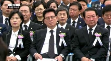 앞서 이날 정우택 원내대표는 국립현충원에서 열린 제 62회 현충일 추념식에 참석, 문재인 대통령이 추념사를 낭독할 때 눈을 감고 있는 모습이 중계된 것.