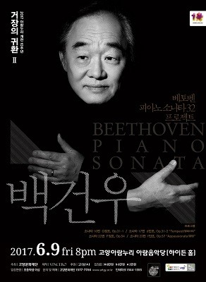 고양문화재단은 2017년 아람누리 개관 10주년을 맞아 <거장의 귀환> 마지막 기획공연으로, 오는 9일 아람음악당 하이든홀에서 피아니스트 백건우의 ‘베토벤 피아노 소나타’ 공연을 진행한다.