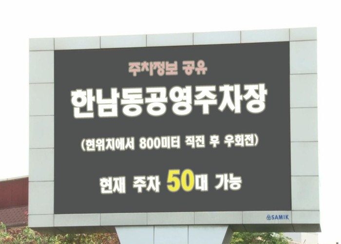 이를 위해 구는 상반기 중 지역내 공영주차장(한남공영주차장 등 5곳)과 민영주차장(호텔캐피탈 등 20곳)에 대한 데이터베이스를 구축하고 주차장 내 빈 공간을 바로 확인할 수 있는 센서를 설치할 예정이다.