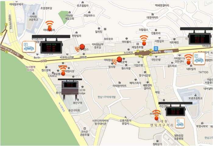 구는 차량을 가지고 이태원을 찾는 관광객들이 인근 공·민영 주차장 정보를 실시간으로 확인할 수 있도록 전국 최초로 주차정보 공유 스마트전광판을 운영할 계획이다.