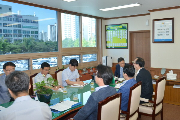 경기 수원시 영통구는 지난 5일 구청장실에서 지방재정 신속집행 추진 대책보고회를 개최했다. 사진은 이상훈 구청장 및 관계자들이 주요사업 실적제고 방안에 대해 토의하는 모습.(사진제공=영통구청)