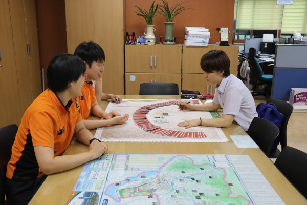 김혜경 경기 하남소방서 재난예방과 소방관은 타로카드를 활용해 직원들의 심리상태를 이해하고 고민을 들으며 직원간의 색다른 소통을 진행하고 있다. 사진은 지난 5일 김 소방관이 직원들과 타로카드를 이용해 이야기를 나누는 모습.(사진제공=하남소방서)