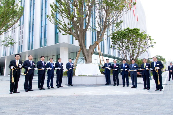 탁수명 강서구의회 부의장은 최근 롯데그룹의 식품관련 4개 회사가 합작해 조성한 ‘롯데 중앙연구소’의 오픈식에 참석했다. 사진은 신동빈 롯데그룹 회장을 비롯한 관계자들이 기념비 제막식에 앞서 기념촬영을 하는 모습.(사진제공=강서구의회)