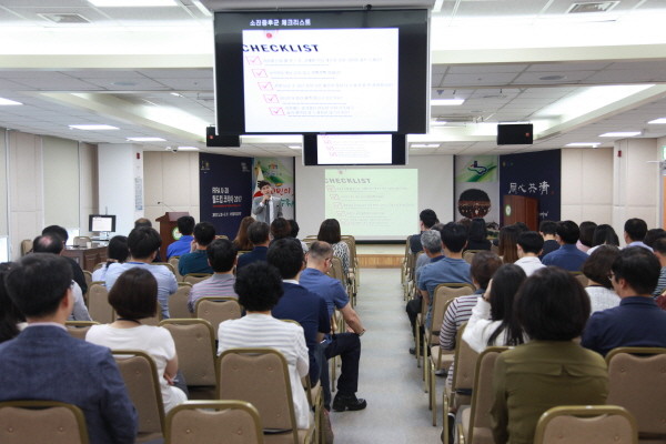 최근 경기 수원시 팔달구는 소속 직원을 대상으로 2017년 상반기 직장교육을 실시했다. 사진은 정현우 강사가 ‘작은 차이의 변화, 긍정의 법칙’을 주제로 강의를 진행 중인 모습.(사진제공=팔달구청)