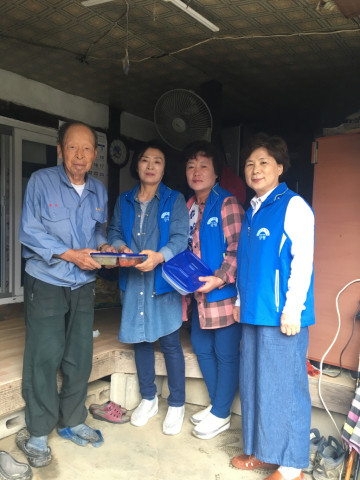 경기 양평군 옥천면 행복돌봄추진단은 지난 7일 지역내 거주하고 있는 독거노인 12가구를 방문해 밑반찬을 전달하는 봉사활동을 실시했다. 사진은 밑반찬을 전달받은 노인과 행복돌봄추진단 관계자들이 기념촬영을 하는 모습.(사진제공=양평군청)