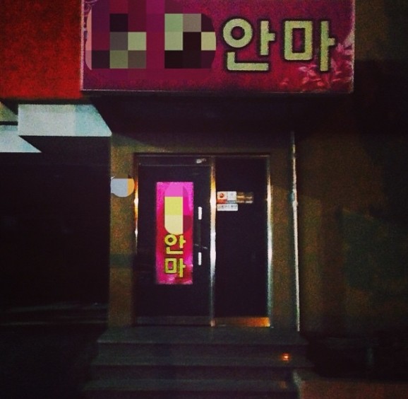 공개된 사진 속에는 한 안마방의 출입구 사진으로 상호가 모자이크 처리 돼 있다.