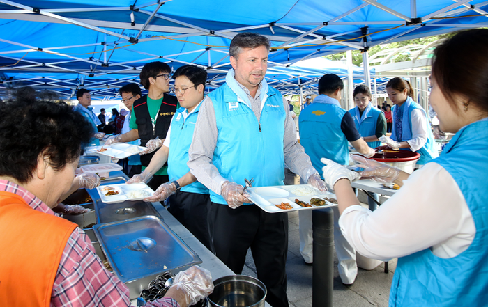 이번 무료급식 행사에는 에디발도 크레팔디(Edvaldo Crepaldi) 한국지엠 구매부문 부사장, 이정우 한국지엠 협신회 회장 등 100여명의 임직원 자원봉사자들이 참가했다.