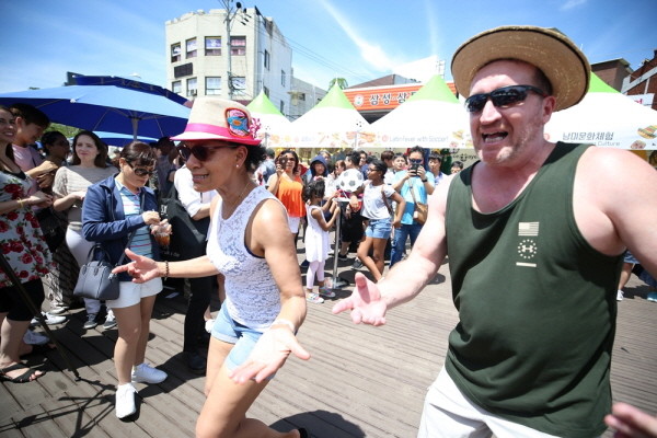 지난 10일 성북구가 주한 브라질, 스페인, 과테말라, 도미니카공화국, 멕시코, 베네수엘라, 볼리비아, 에콰도르, 칠레, 콜롬비아, 파라과이, 페루 대사관과 함께 한성대입구역 분수마루에서 라틴아메리카 축제를 개최했다. 사진은 라틴댄스 음악에 맞춰 댄스를 선보이는 방문객들의 모습.(사진제공=성북구청)
