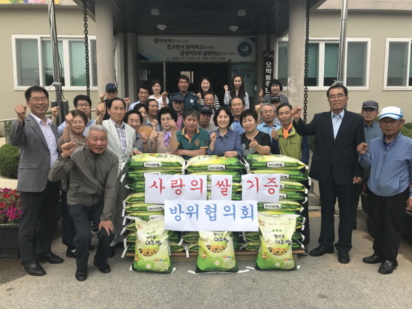 최근 경기 여주시 오학동 방위협의회는 오학동 주민센터에서 김기영 동장과 이광우 노인분회장 등이 참석한 가운데 '사랑의 쌀' 20kg·30포를 지역내 경로당 17곳에 전달하는 전달식을 개최했다. 사진은 관계자들이 기념촬영을 하는 모습.(사진제공=여주시청)