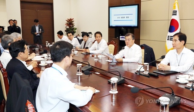 문재인 대통령(오른쪽 두번째)이 15일 오전 청와대 여민관에서 수석보좌관회의를 주재하고 있다.