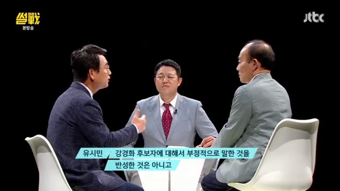 15일 방송한 JTBC '썰전'에서는 유시민 작가가 "제가 강경화 외교부 장관 후보자에 대해서 좀 심하게 부정적인 표명을 했는데, 그거에 대해 생각이 다른 시민들이 저를 비판하는 것도 마땅한 권리라고 본다. 앞으로도 토론을 할 수 있는 문제"라면서 받아들였다.